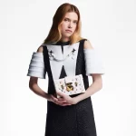 The Petite Malle Tricolore is made from white lambskin with a Monogram in red, white, and blue, the colors of the French flag. The gold-color S-lock and clasps and white cowhide-leather trim complete Nicolas Ghesquière’s celebration of the House’s French heritage. It can be carried like a clutch or with its removable and adjustable strap.